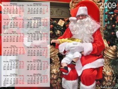 Детский виртуальный костюм — календарь 2009 с Дедом Морозом для ребёнка до двух лет.
