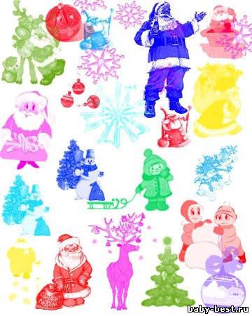 Красивый набор новогодних кистей — Дедов Морозов, Снегурочек, оленей, ёлок, игрушек, шаров и т. д!