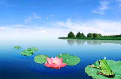Летний PSD исходник с лотосом и лягушонком на озере, формат PSD(2000*1300)