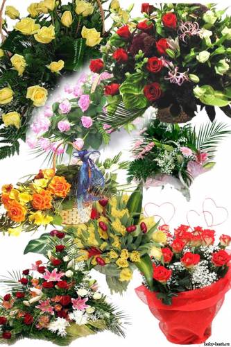 8 роскошных букетов роз в корзинках на прозврачном фоне для украшения Ваших работ. Формат psd. Слои отдельно.